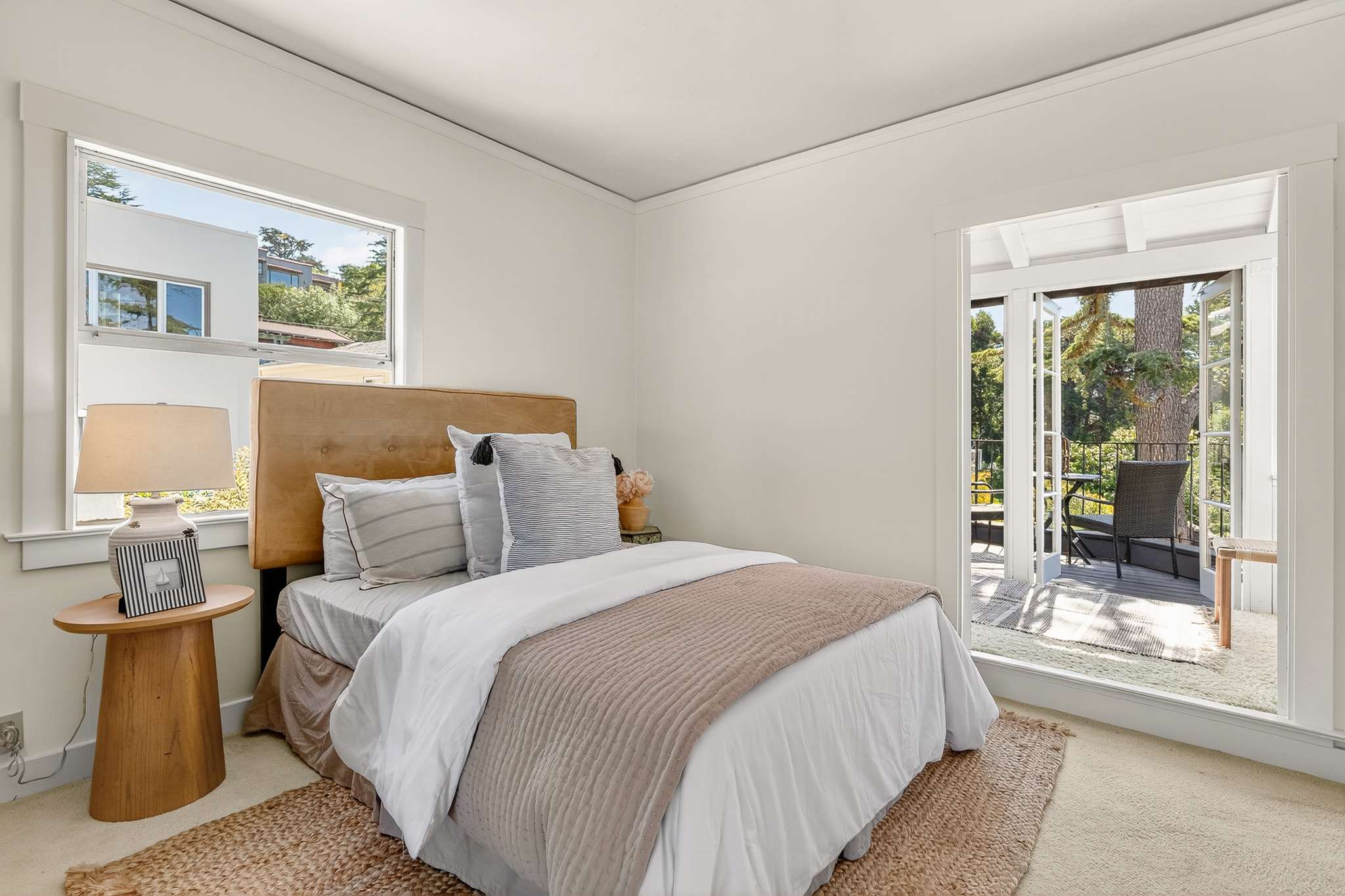 Upstairs, a third-level bedroom with adjoining sunroom showcases fabulous Bay and city views, offering the perfect setting for a serene retreat or an additional primary sanctuary. The lower level includes a finished bonus space with a 3rd bath, (permit status unknown, buyer to investigate) and separate entrance, providing flexibility for guests, expansion, or multigenerational living.